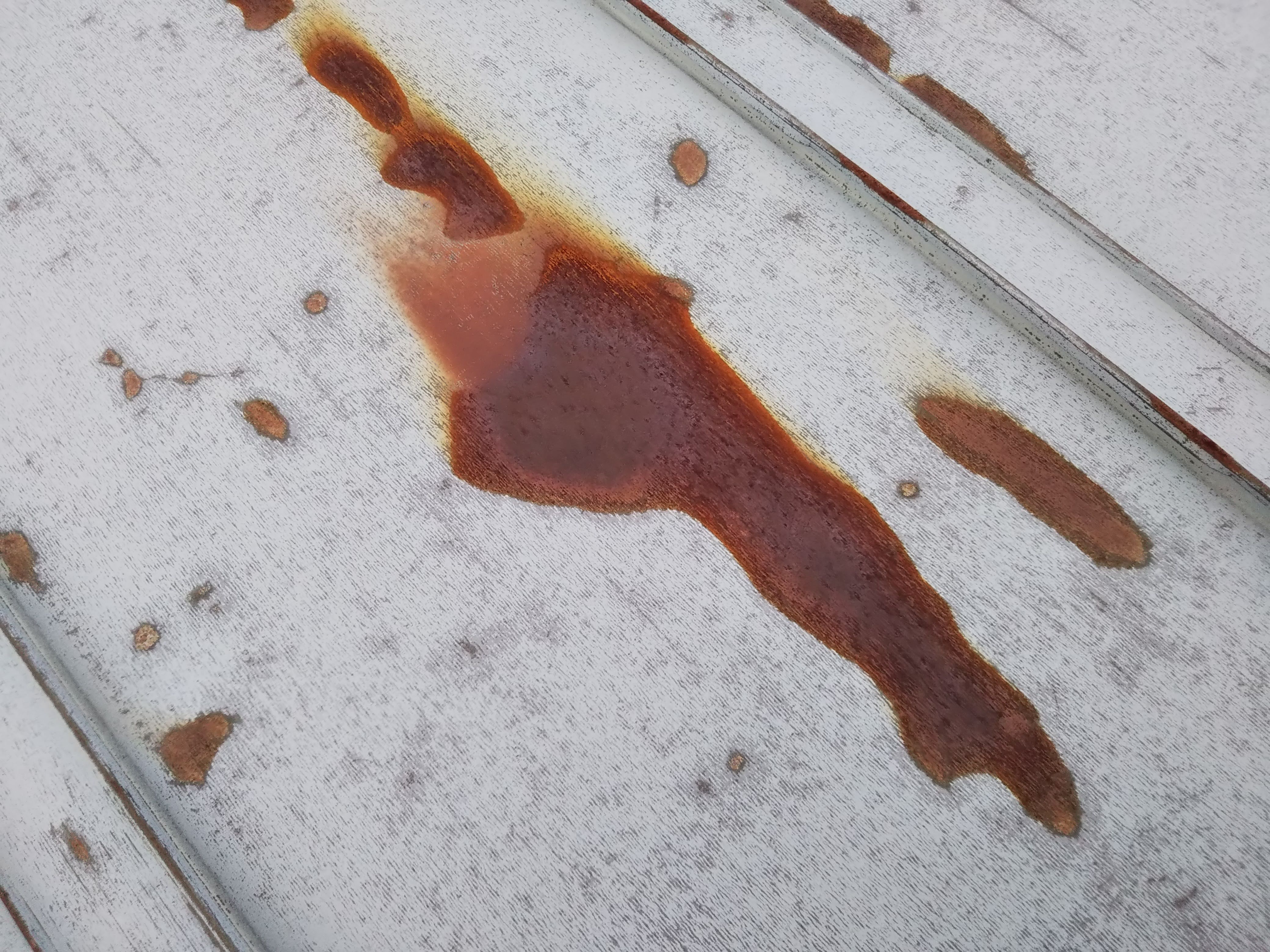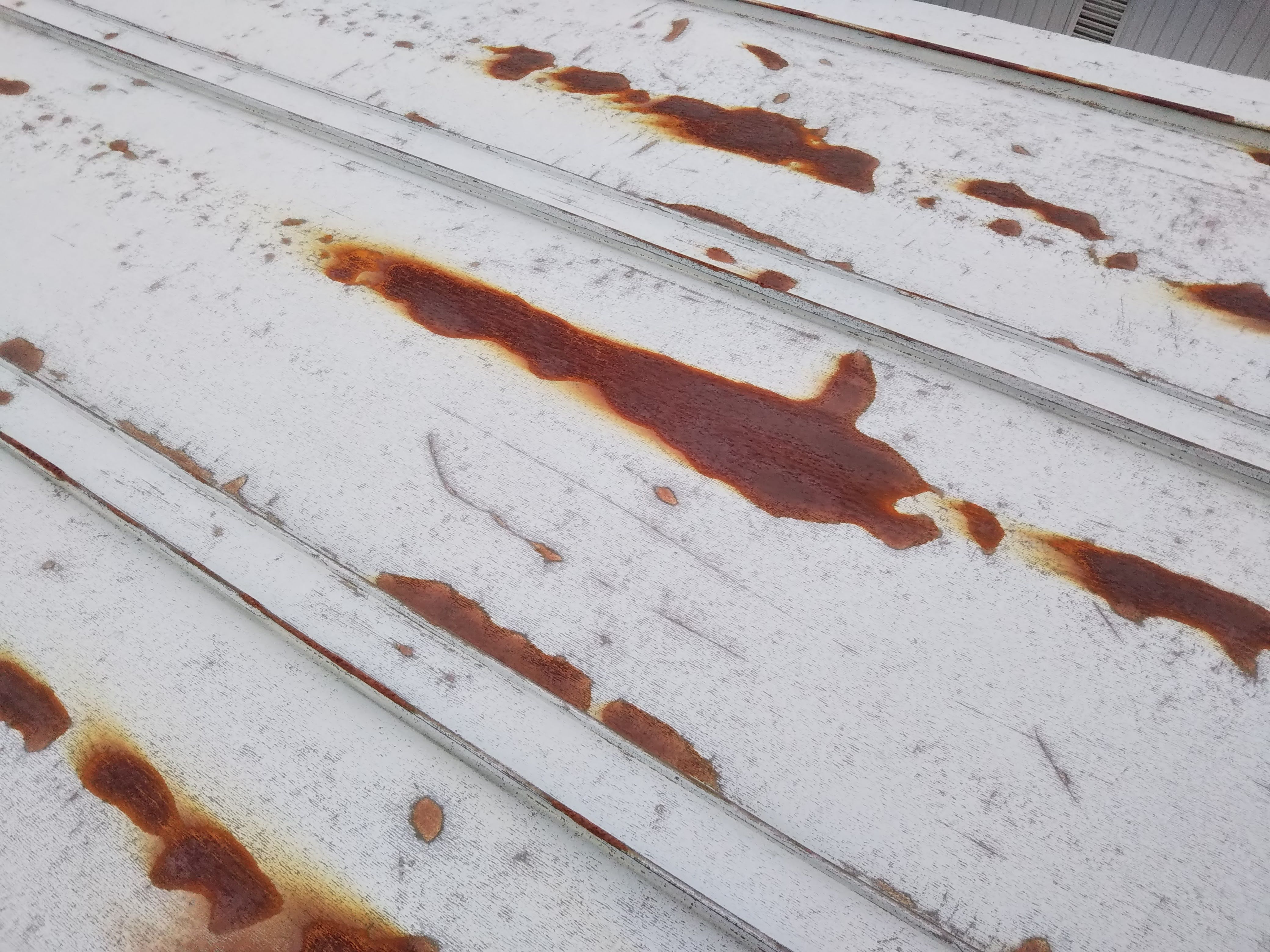 元々白かった屋根は色褪せ、赤黒い錆があちこちに発生していました。