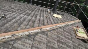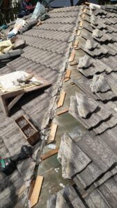 改修方法としては、既存の棟瓦、土台を全て撤去します。