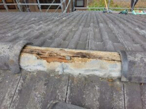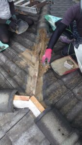 棟瓦を一つ開けてみたら写真の様に木部が腐っている状態でした。