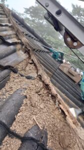 改修する際に、瓦を外しましたら木部が粉になっており棟瓦が乗っているだけの状態でした。この様なケースがある為、屋根は実際に登ってみないと判らない部分が多いです。