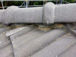 こちらはS様邸の棟部ですが、南蛮漆喰が崩れ落ちて来ており