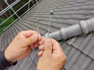 瓦を止めているビスが抜けており、そこから雨水が侵入し