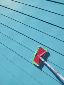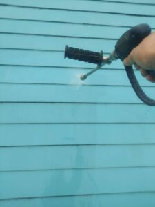 その上で、高圧洗浄を行い弱い塗膜や、雨染みを洗い流します