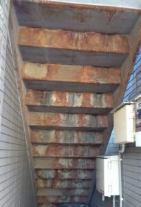 お家にはベランダや鉄骨階段、鉄柱など、築年数によって色々な所に鉄部が使用されております。