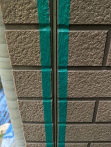 ↓まずは旧目地を撤去して養生テープを貼る