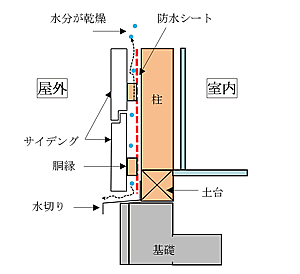 元々、寒冷地の住宅の耐久性向上を目的として、サイディング板と透湿防水シートの間に15~18mmの隙間を設け、壁内の湿気、水分を排出させる方法