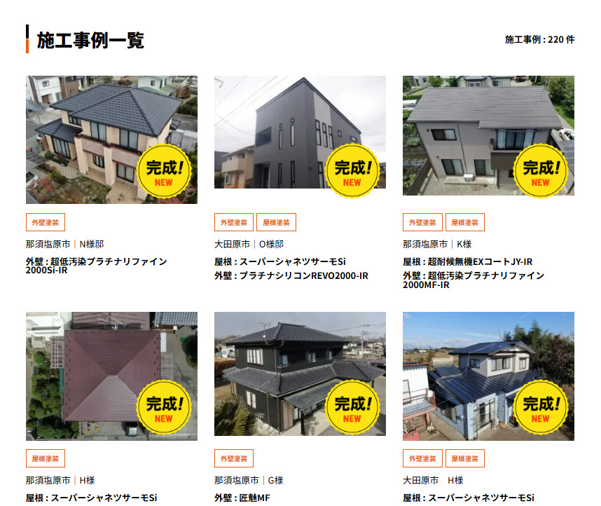 プロタイムズ那須塩原店(株式会社とちのき塗装テック)では、大田原市・那須塩原市を中心に累計数千棟以上の施工実績があります。