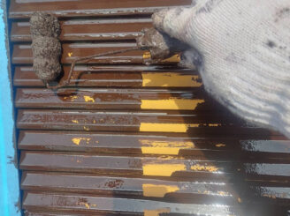 屋根の上塗りです。中塗り材と同じ塗料を使用します。