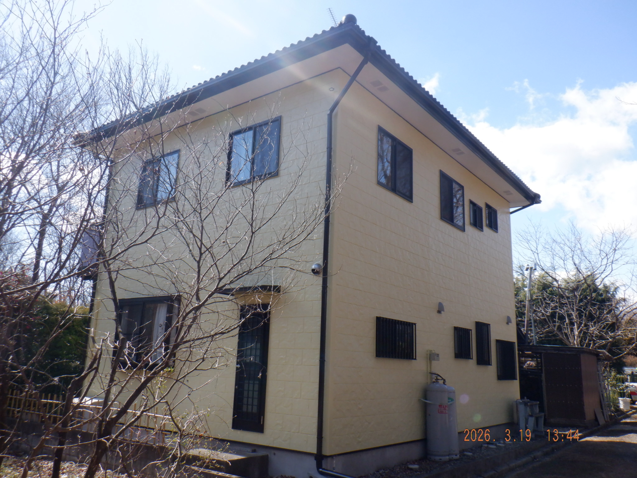 屋根をトゥルーブラック、外壁をレモンという色で塗装しました。施工前に近い系統の色を使用し、より明るくやわらかい印象に仕上りました。